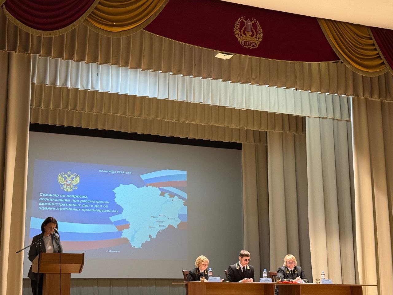 3 октября 2025 года в г. Ленинске на площадке дворца культуры «Октябрь» состоялся семинар с судами области по вопросам, возникающим при рассмотрении административных дел и дел об административных правонарушениях. Открывая семинар, председатель Волгоградского областного суда Глухов А.А. обратил внимание судей на обеспечение эффективности работы за счёт дальнейшего повышения качества отправления правосудия. В семинаре приняли участие заместитель председателя Клочков А.В., председатель судебного состава по пересмотру дел об административных правонарушениях Язынина С.Г., судья судебного состава по рассмотрению дел, возникающих из публично-правовых отношений Гоношилова О.А., мировые судьи судебных участков Быковского, Дубовского, Ленинского, Палласовского, Среднеахтубинского, Старополтавского районов Волгоградской области, а также федеральные судьи судов этих районов, рассматривающие административные дела и дела об административных правонарушениях. В рамках семинара перед собравшимися с докладами выступили судьи Среднеахтубинского районного суда Волгоградской области Серова Т.А. и Сукочева Л.А., мировой судья судебного участка Nº 44 Палласовского судебного района Волгоградской области Мариняк М.А. В диалоге с судьями областного суда участниками семинара обсуждались отдельные вопросы, касающиеся практики рассмотрения административных дел в порядке КАСРФ, а также дел об административных правонарушениях в порядке КоАП РФ. |